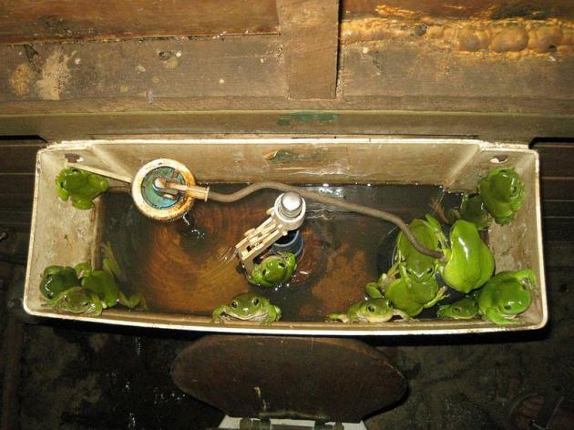 Que vivan un montón de ranas en el tanque de tu taza de baño quiere decir que hay un serio problema de higiene… pero afortunadamente las ranas no son tan feas como los sapos 😀 …