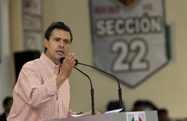 Después de haber escuchado el diagnóstico del líder petrolero, Carlos Romero Deschamps, sobre las condiciones en las que se encuentra esa empresa paraestatal, Peña Nieto, invitado de honor en la sede de la Sección 34 del sindicato petrolero, dijo: