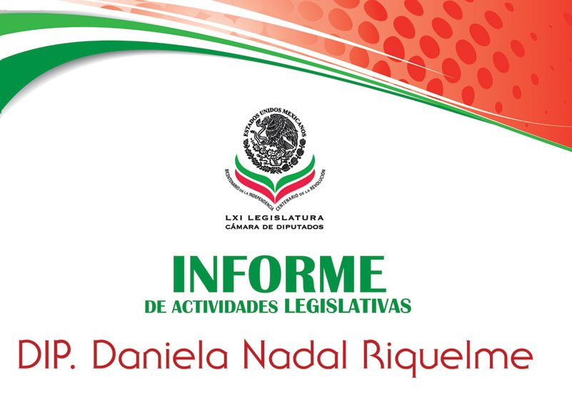 El próximo sabado once de enero, a las once horas, La Diputado Federal Daniela Nadal Riquelme, estara presentando a la ciudadania su informe de actividades legislativas y de gestión.