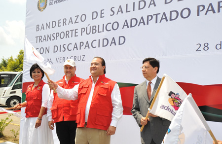 Antes de inaugurar el Centro de Atención del Autismo y el albergue, el gobernador Javier Duarte de Ochoa entregó 23 unidades de transporte público adaptado para personas con discapacidad, que tendrán la doble finalidad de trasladar a los pacientes de los centros y unidades de rehabilitación estatal y regionales e integrarse a las rutas del servicio público de transporte.