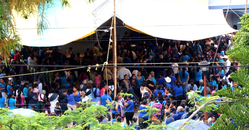 Para estos días recibirán nuevamente el apoyo debido a que las que se tenían contemplados para el pago de oportunidades por ejemplo, eran en vísperas de las elecciones, sin embargo, les reiteraron que tiene que ir vestidos de azul “el adelanto del pago es porque la fecha tocaba en los días de elecciones y en cuanto al color azul supuestamente es para formar el logotipo de la sedesol, que lleva una florecita de varios colores, pero no entendemos porque la mayoría tenemos que ir de azul, que es el color del PAN”.