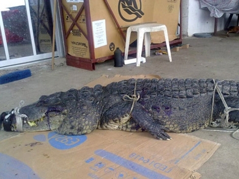 El cocodrilo se come varios kilos de carne y como necesita tener la boca abierta para energizarse, por el calor del sol hay que estarlo bañando para que se hidrate.
