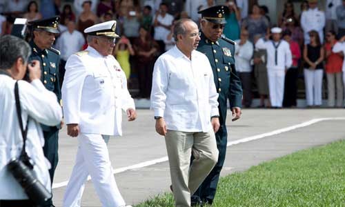 El presidente Felipe Calderón agradeció a los titulares de las secretarías de Marina (Semar) y de la Defensa Nacional (Sedena), Mariano Francisco Saynez Mendoza y el General Guillermo Galván Galván, respectivamente, su lealtad en la lucha contra el crimen organizado.