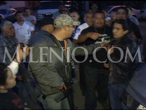 Los agentes –de los que no se proporcionaron sus nombres- intentaron abordar un vehículo Platina para retirarse del lugar, sin embargo los comerciantes se lo impidieron por lo que optaron por bajar del vehículo, cerrarlo con llave y proceder a introducirse de nuevo a las instalaciones, pero fueron copados por los comerciantes, quienes comenzaron a jalonearlos y a darles empellones, por lo que uno de los agentes activó su arma de fuego, un arma larga e hizo cinco detonaciones al aire para amedrentar a los manifestantes, esto al ver que estaba en riesgo su integridad.