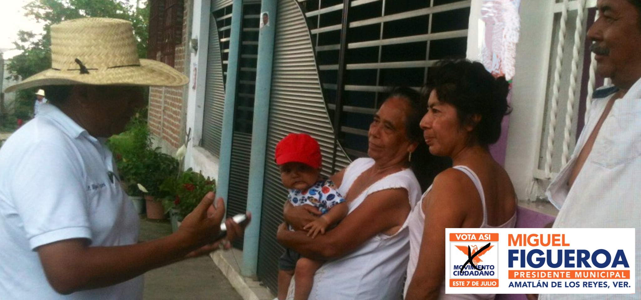 Amatlán de los Reyes, Ver.- El candidato ciudadano a la alcaldía de este municipio, Miguel Ángel Figueroa Ramos, recorrió este día las colonias comprendidas dentro de la comunidad de Peñuela en este municipio, donde visito casa por casa a cada para saludar a los habitantes y darles a conocer sus propuestas para hacer de Amatlán un mejor lugar para su gente, donde sus propuestas fueron acogidas de manera positiva y con buen animo.