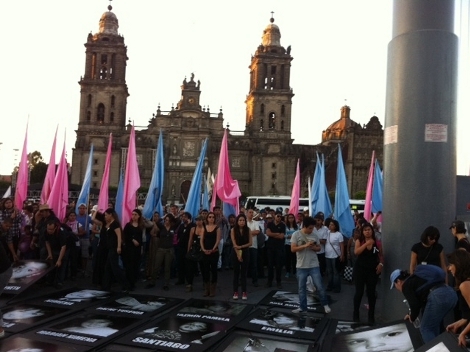 Después continuaron la marcha hasta el pie del asta bandera del Zócalo, donde colocaron las fotografías de los pequeños.