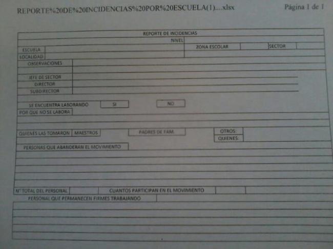 En el reporte de incidencias, aparte de contemplar el nombre del sector, nombre de escuela, zona escolar, les cuestiona si la escuela se encuentra laborando y deben responder marcando en cuadrito “sí o no” según sea el caso y en el caso de que no estén laborando especifiquen por qué no.