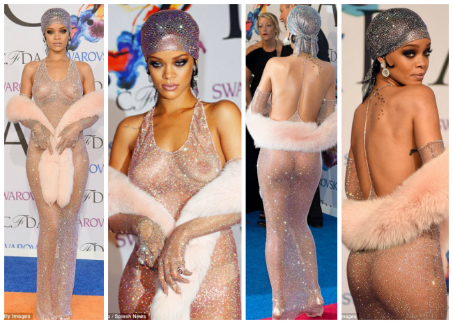 Nueva York.- Casi desnuda bajo una túnica de fina y traslúcida malla con miles de cristales, la cantante pop Rihanna fue coronada el lunes en la noche por la elite de la moda neoyorquina como ícono «fashion» del año, celebrando su gusto y, sobre todo, su audacia.
