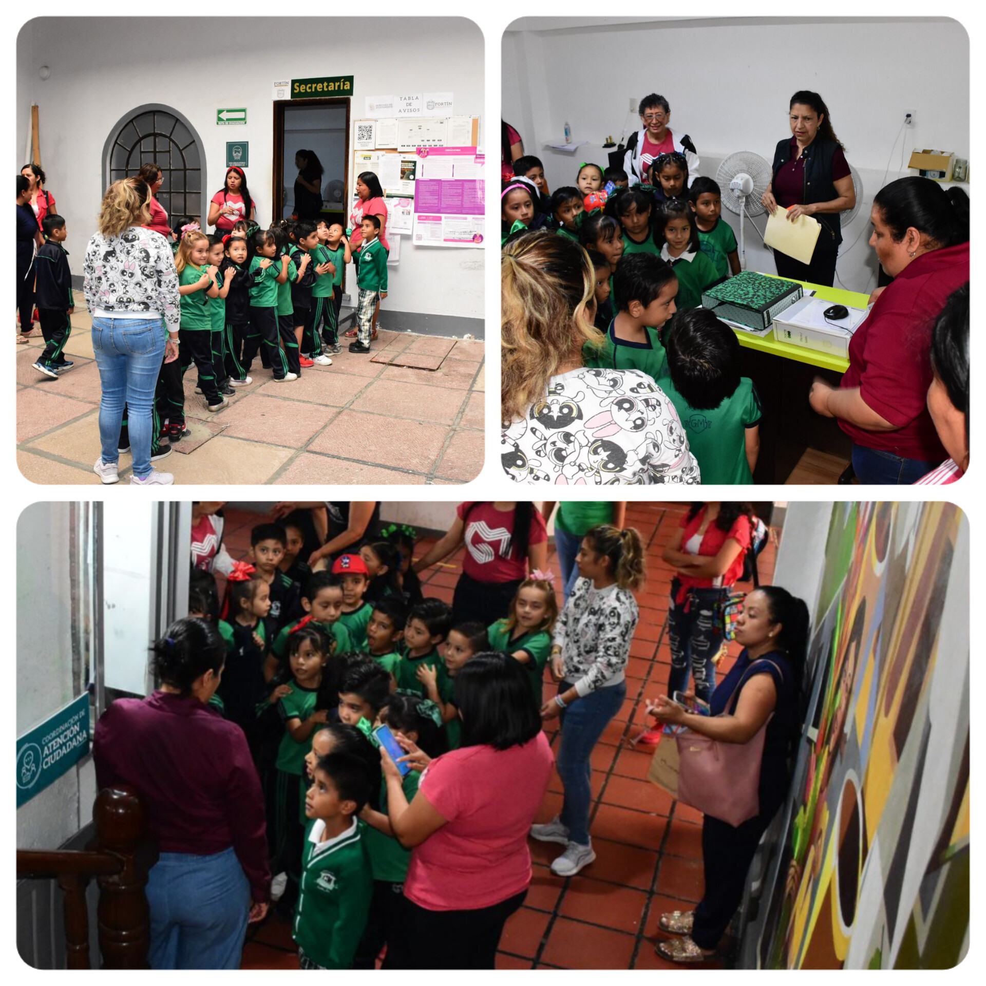 Mientras tanto, las y los alumnos de este jardín de niños recorrieron cada una de las oficinas del palacio municipal en donde fueron recibidos con gran afecto, asimismo pasaron a la sala de cabildo y allí conocieron a los ex presidentes que han gobernado Fortín.