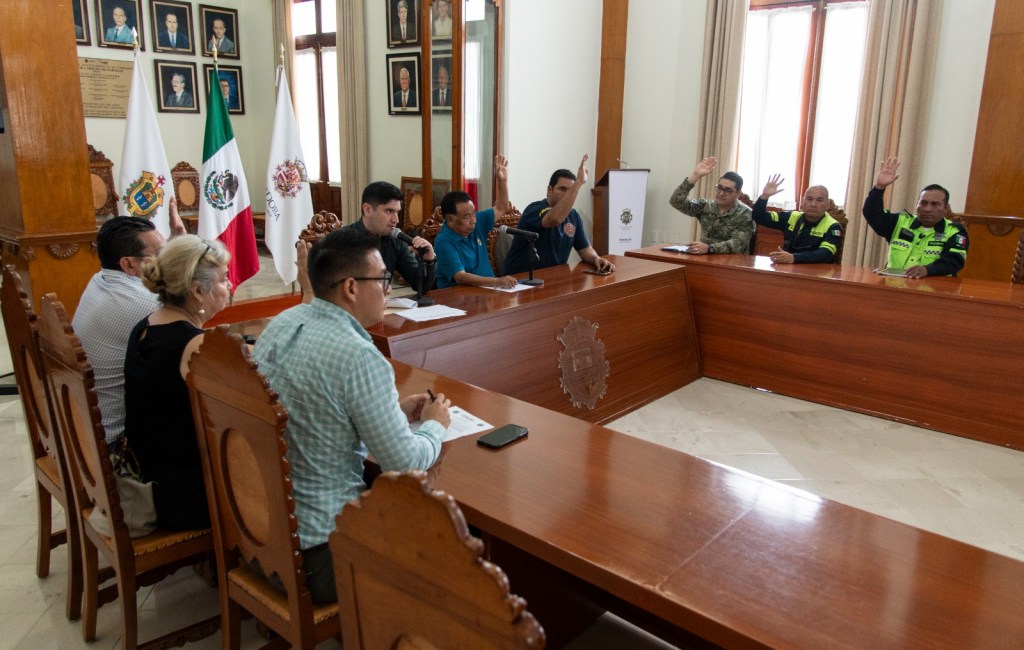 Los integrantes del consejo encabezados por el alcalde Juan Martínez Flores votaron por unanimidad sobre las acciones a emprender; asistieron los regidores Daniel Vázquez Hernández, Georgina Andrea Aguilar Sánchez, Jonathan Francisco Rosas Blanco, titulares de las corporaciones de seguridad, funcionarios municipales, representantes de la sociedad civil y organizaciones.