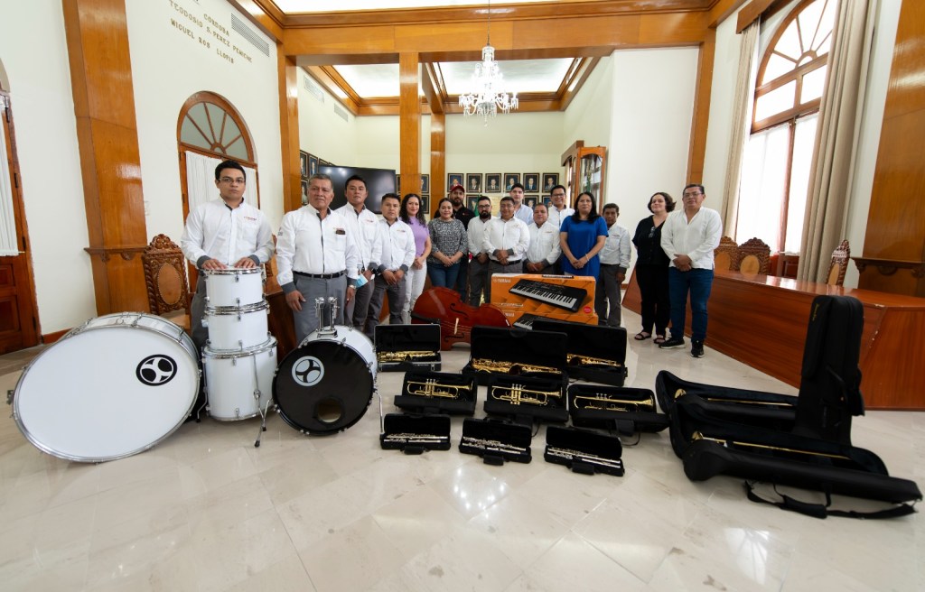 La Banda Municipal de Córdoba fue equipada con 18 instrumentos musicales para que sigan con su labor de dar identidad a la ciudad y mantener las tradiciones cordobesas; recibió Salvador Campos Hernández, director de la Banda Municipal de manos de Vania López González, titular de la Sindicatura Municipal.