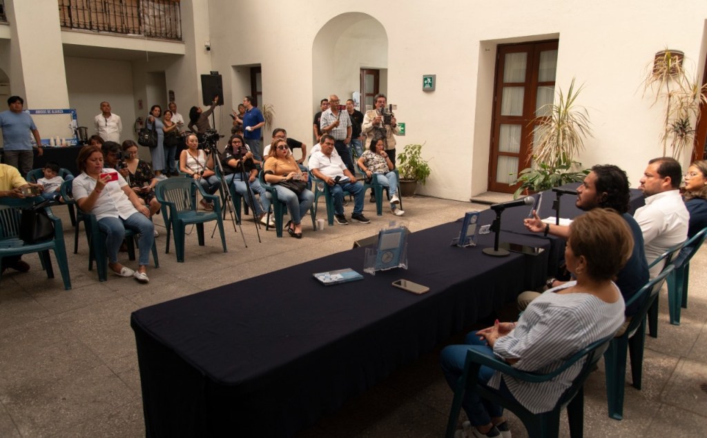 La rueda de prensa que se llevó a cabo en el patio central del ayuntamiento, conto con la presencia de la representante de la regidora cuarta María Luisa Martínez Ramírez, Maricarmen Sarmiento Huerta. El director de desarrollo social Daniel Hernández del Ángel, la directora de Grupo medico Alianza y su gerente: Aránzazu Palacios Reyes y Zoret Xaca Alpirez, respectivamente.