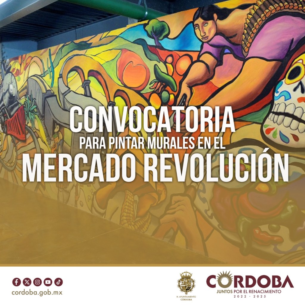 Córdoba, Ver.- Con el objetivo de embellecer los espacios públicos y promover la preservación del patrimonio cultural, el Ayuntamiento de Córdoba por medio de la Dirección de Desarrollo Social, convoca a la comunidad en general a participar en la creación de murales artísticos del mercado “Revolución”, el cual es un ícono de la ciudad, informó, Daniel Hernández del Ángel, titular de esta oficina.