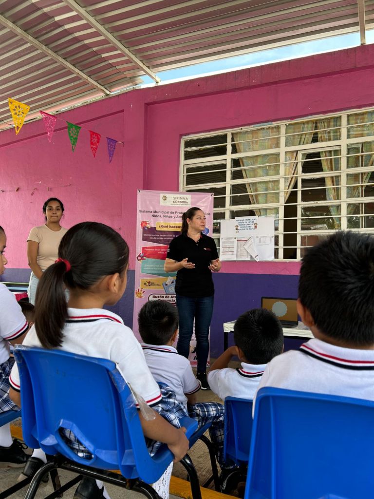 Córdoba, Ver.- Alumnos del Jardín de Niños “María Grever” de la comunidad de San José de Tapia, recibieron este martes la información sobre “Que es SIPINNA”, como parte de las acciones en pro de los sectores más vulnerables que realiza el Ayuntamiento de Córdoba a través de la Secretaría Ejecutiva de Protección Integral de Niñas, Niños y Adolescentes (SIPINNA).