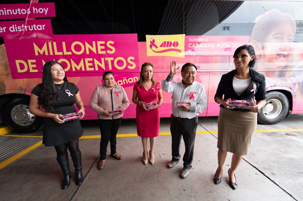 En el evento, Mayra García Ramírez, gerente comercial de ADO, señaló que la decimotercera edición de la Caravana Rosa tiene como objetivo promover la detección oportuna del cáncer de mama en mujeres mayores de 40 años.