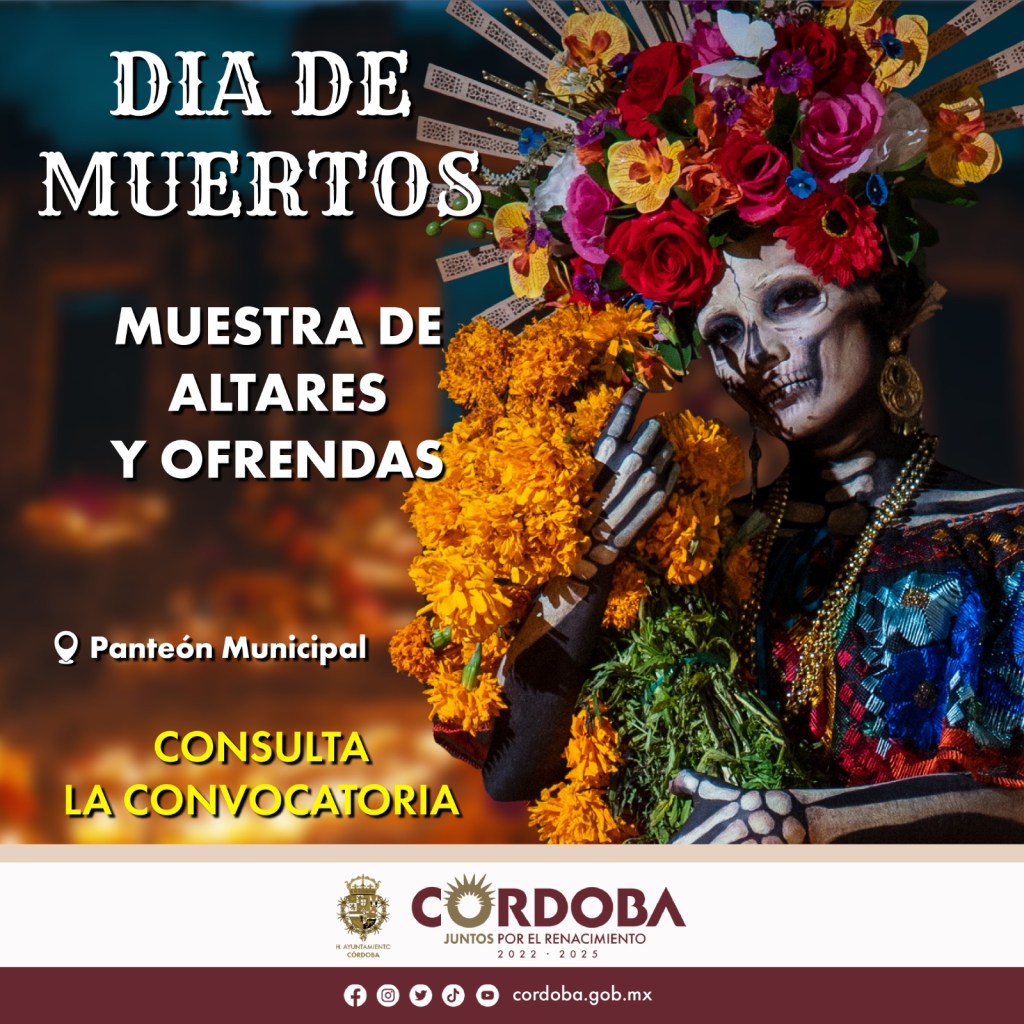 Córdoba, Ver.- Como parte de las actividades alusivas al Día de Muertos, la Jefatura de Panteones de la Dirección de Servicios Municipales del Ayuntamiento de Córdoba convoca a las instituciones educativas públicas y privadas, así como a asociaciones, comercios, familias y al público en general de la zona cercana al cementerio municipal, a participar en la Muestra de Altares y Ofrendas del Día de Muertos, que se llevará a cabo en el interior del Panteón Principal.