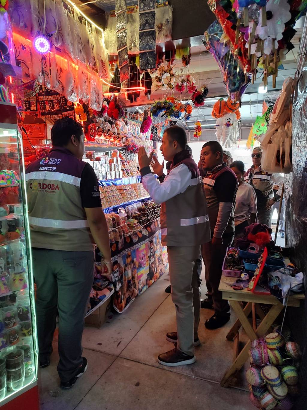 Córdoba, Ver.- Con el objetivo de mantener el orden y la seguridad durante las festividades de Día de Muertos, el Ayuntamiento de Córdoba, a través de sus áreas de Comercio, Policía Municipal, Protección Civil, Tránsito y Jurídico, realizó un operativo en el Mercado Revolución. En este recorrido, se invitó a los locatarios a respetar los espacios asignados para asegurar una circulación fluida de las personas que visitarán el zoco en los próximos días.