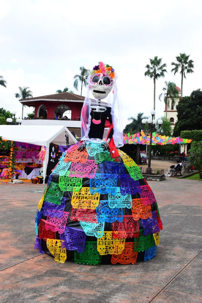 Adornos con guías de papel picado lo cubren, al igual que el kiosco de Fortín, en donde fueron colocadas ofrendas en las fuentes principales. Las tradicionales catrinas vigilan el centro de la ciudad y lucen con trajes elegantes para dejar un grato recuerdo de esta festividad, una de las cuales mide cinco metros de altura.