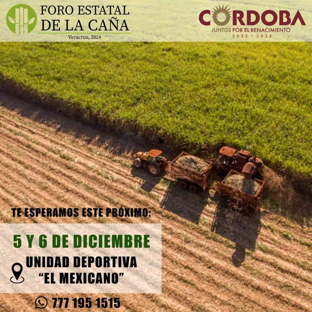 Córdoba, Ver.- Córdoba será sede del Foro Estatal de la Caña, que se realizará el próximo 5 y 6 de diciembre, en donde habrá conferencias, exposiciones y exhibiciones de todo lo relacionado con el proceso de la caña.