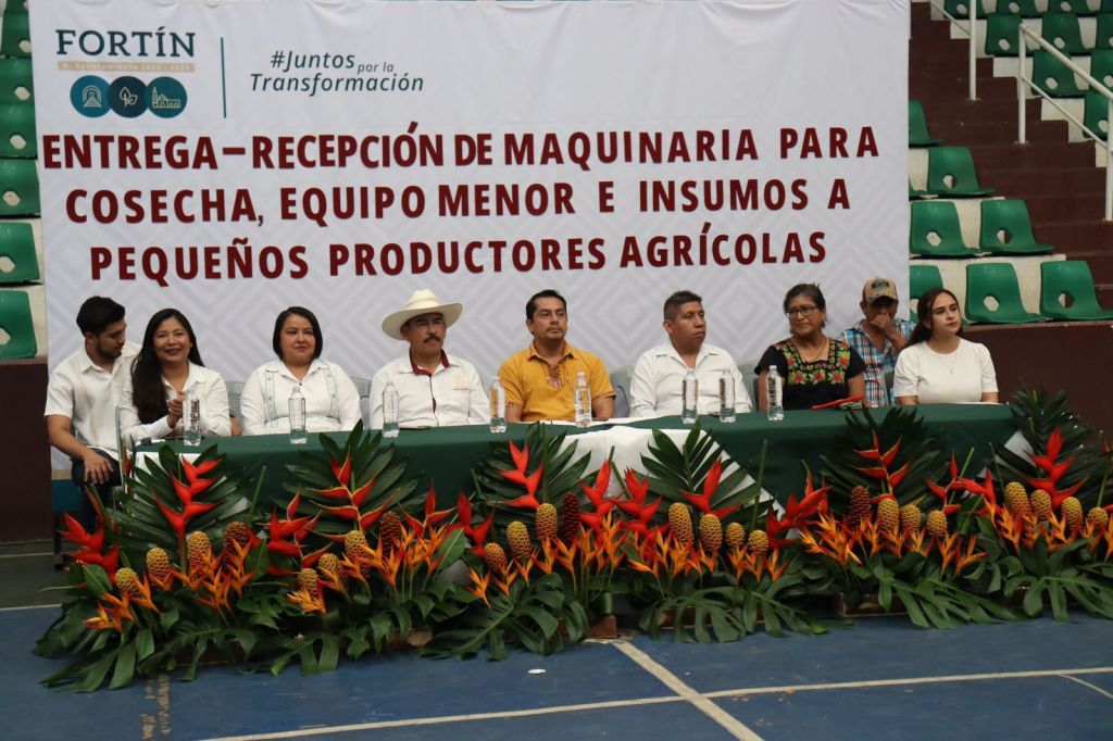 Fortín, Ver. – El presidente municipal Gerardo Rosales Victoria y la Sub Secretaria de Desarrollo Agrícola, Ing. Patricia Córdoba Carvallo encabezaron la entrega de beneficios a productores pertenecientes a las escuelas campesinas de 21 municipios de la región.