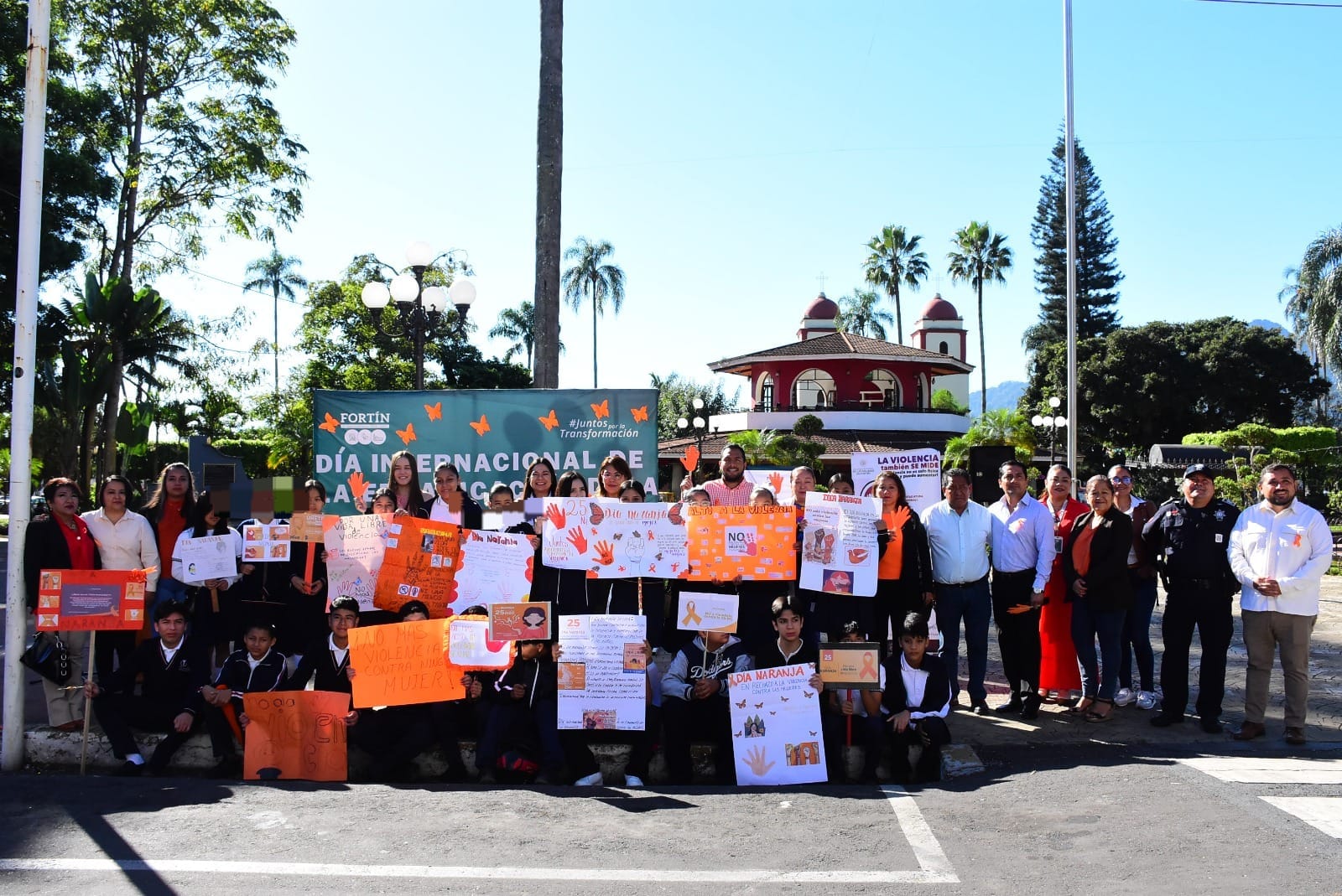 La mañana de este lunes, se llevó a cabo un acto protocolario frente al palacio municipal, organizado por el Instituto de la Mujer, en donde se reunieron las autoridades municipales y las instituciones educativas, Telesecundaria Antonio Ruiz Galindo y el Formativo Serradel, las cuales aportaron carteles alusivos al tema sobre la erradicación de la violencia contra la mujer y las niñas.