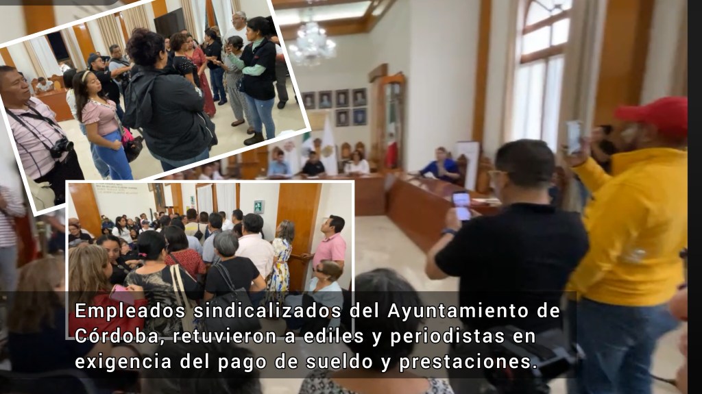 Córdoba, Ver.- En un acto sin precedentes, miembros del Sindicato de Trabajadores al Servicio del Municipio de Córdoba, afiliados a la CROC, irrumpieron en una sesión de Cabildo y retuvieron a ediles y reporteros de la fuente del Palacio Municipal.