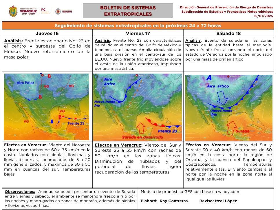 Córdoba Ver.- El Ayuntamiento de Córdoba a través de la coordinación de Protección Civil informó que esta semana tenemos la presencia del frente frío No. 23, combinado con un evento de Surada que podría llegar el fin de semana y para el lunes el ingreso del posible nuevo frente frío No. 24.