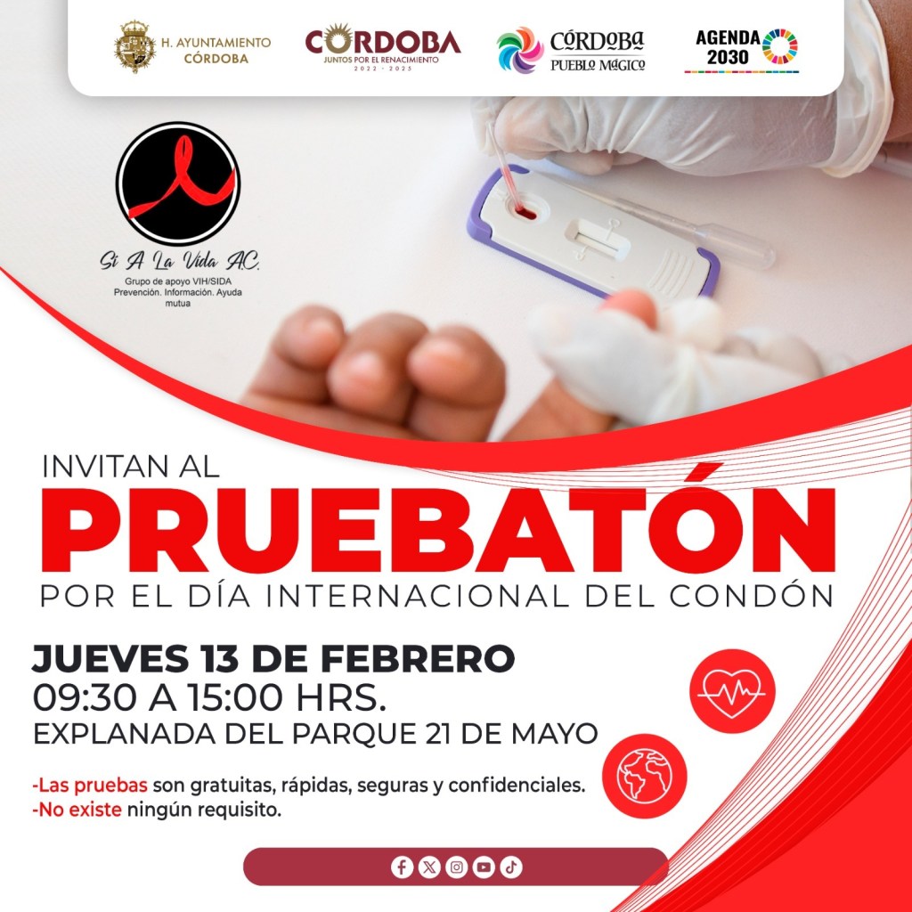 Córdoba, Ver.- Con la realización de pruebas rápidas gratuitas para la detección de enfermedades de transmisión sexual, platicas de planificación familiar y medicina preventiva, la coordinación de Salud municipal llevará a cabo mañana 13 de febrero el pruebatón, esto en el marco del Día Internacional del Condón.