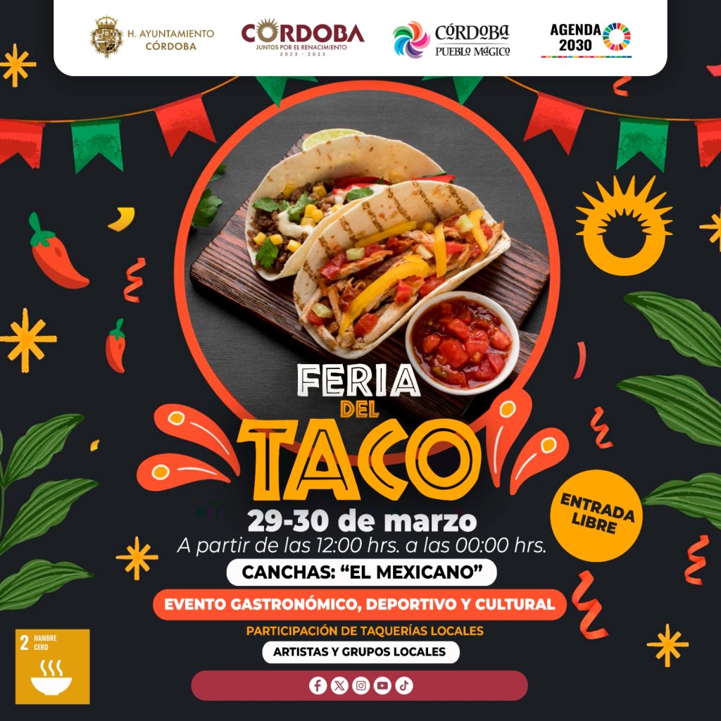 En este maratón taquero también habrá actividades deportivas, culturales y artísticas, todo esto para festejar juntos el Día del Taco que se realiza en México el día 31 de marzo, por ello a esta fiesta de sabores se espera que lleguen todos los cordobeses para degustar de todo tipo y variedad de taquitos que se elaboran en la región.