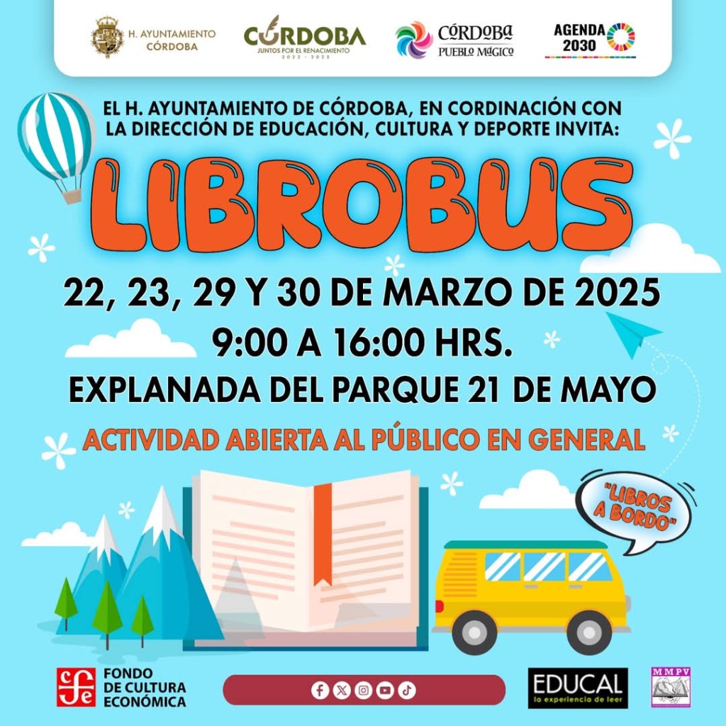 Míriam Guadalupe Núñez Cardoso, coordinadora de Educación de la Dirección de Educación, Cultura y Deporte del Ayuntamiento, señaló que con el slogan “Libros a bordo», el Fondo de Cultura Económica y el Ayuntamiento sumaron esfuerzos para coordinar una ruta del 20 de marzo al 04 de abril, en donde el Librobus recorrerá diversas instituciones educativas de nivel básico de Córdoba y municipios como Fortín, Cuitláhuac, Amatlán y Tezonapa.