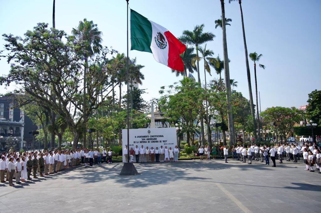Correspondió al presidente municipal, Juan Martínez Flores realizar el izamiento de Bandera a toda asta, en la plaza principal de Córdoba.