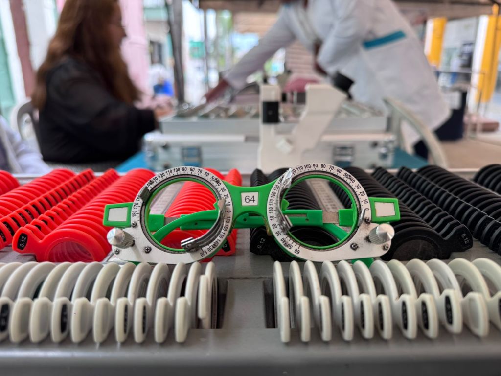 Se ofrece el examen de la vista de manera gratuita, apoyo en toma de signos vitales como glucosa y presión arterial y orientación en salud ocular.