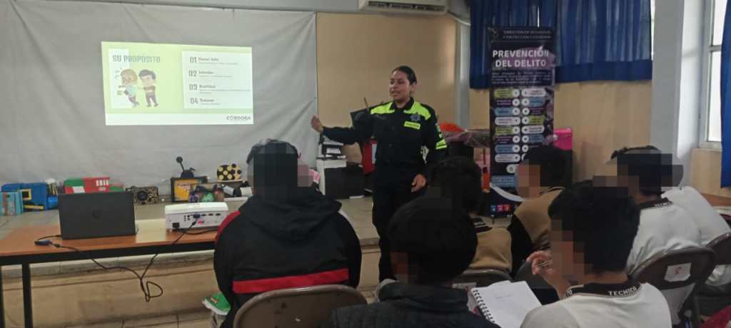 Córdoba, Ver.- Un total de 168 personas entre personal docente y estudiantes de la Secundaria Técnica Industrial No. 70, recibieron las pláticas en temas de prevención acerca del acoso escolar (bullying), números de emergencia y segurichat, acciones que refuerzan el compromiso del gobierno municipal de la cultura en la prevención del delito y denuncia ciudadana.
