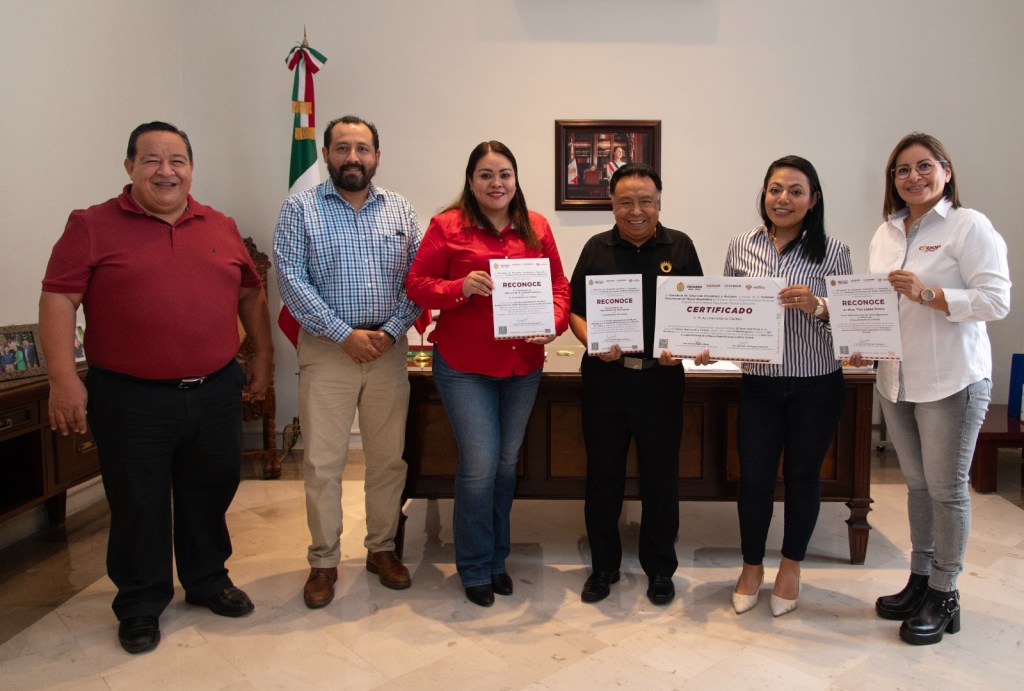 Con la presencia de la síndica, Vania López González; el contralor municipal, Lauro Ramos Olmos, así como la responsable de la Comisión de Mejora Regulatoria del Ayuntamiento, Flor López Rivera, la Ingeniero Itzel Domínguez Zopiyactle, Comisionada Veracruzana de Mejora Regulatoria hizo la entrega del Certificado de Cumplimiento en la Materia al alcalde Juan Martínez Flores.