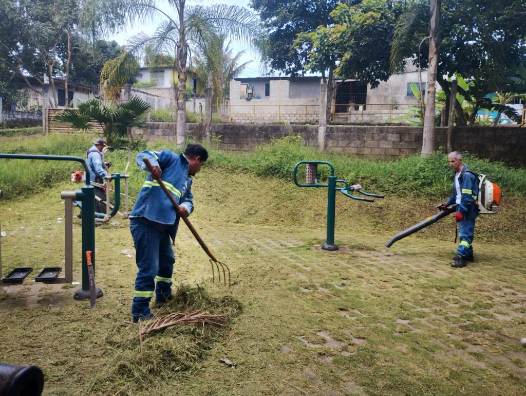 Mediante la solicitud de ciudadanos de El Porvenir se realizó la limpieza y faena en la que personal del área liberó banquetas y áreas de esparcimiento peatonal, también en el parque lineal la Redonda.