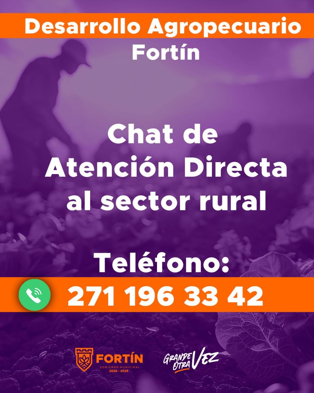 La red social denominada “Coordinación Desarrollo Agropecuario Fortín”, fue abierto con el numero: 271 196 33 42, En ese chat las autoridades municipales compartirán información relevante sobre programas, apoyos y convocatorias. Además de difundir capacitaciones, reuniones y avisos oficiales.